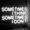 Description: Neon lettering: 'Sometimes I think. Sometimes I don't.'