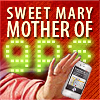 Description: 'sweet mary mother of GPS!' you see the hand of the virgin mary holding an iPhone.